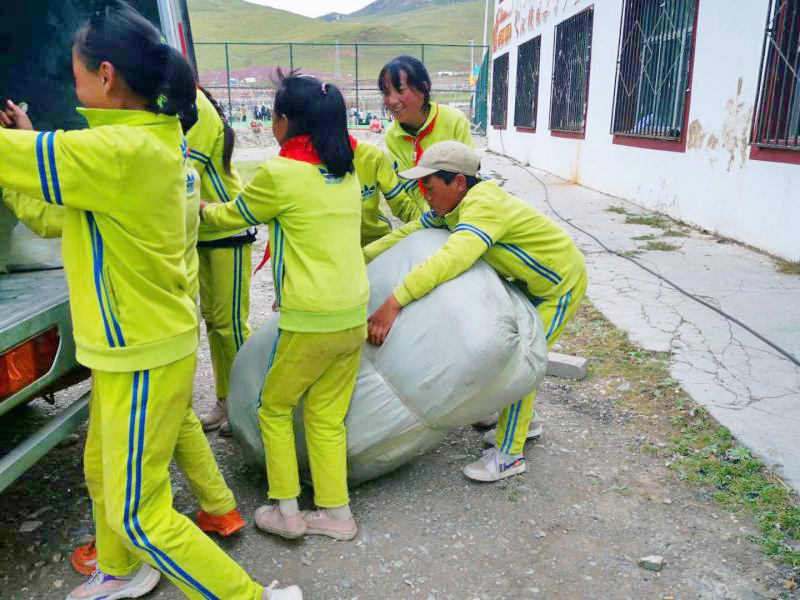 8月30日,滿(mǎn)載由北京天宜上佳高新材料股份有限公司(簡(jiǎn)稱(chēng)“天宜上佳”)捐助愛(ài)心物資的兩輛大卡車(chē)緩緩駛?cè)肭嗪J∮駱?shù)藏族自治州雜多縣瓦里灘孤兒福利學(xué)校,早已做好準(zhǔn)備的孩子們飛快地跑了出來(lái),圍著卡車(chē)歡欣跳躍、卸車(chē)搬貨……