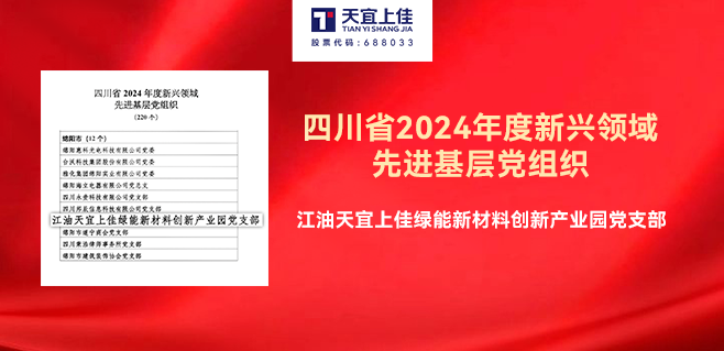 喜訊|江油天宜上佳綠能新材料創(chuàng)新產(chǎn)業(yè)園黨支部入選四川省“先進(jìn)基層黨組織”