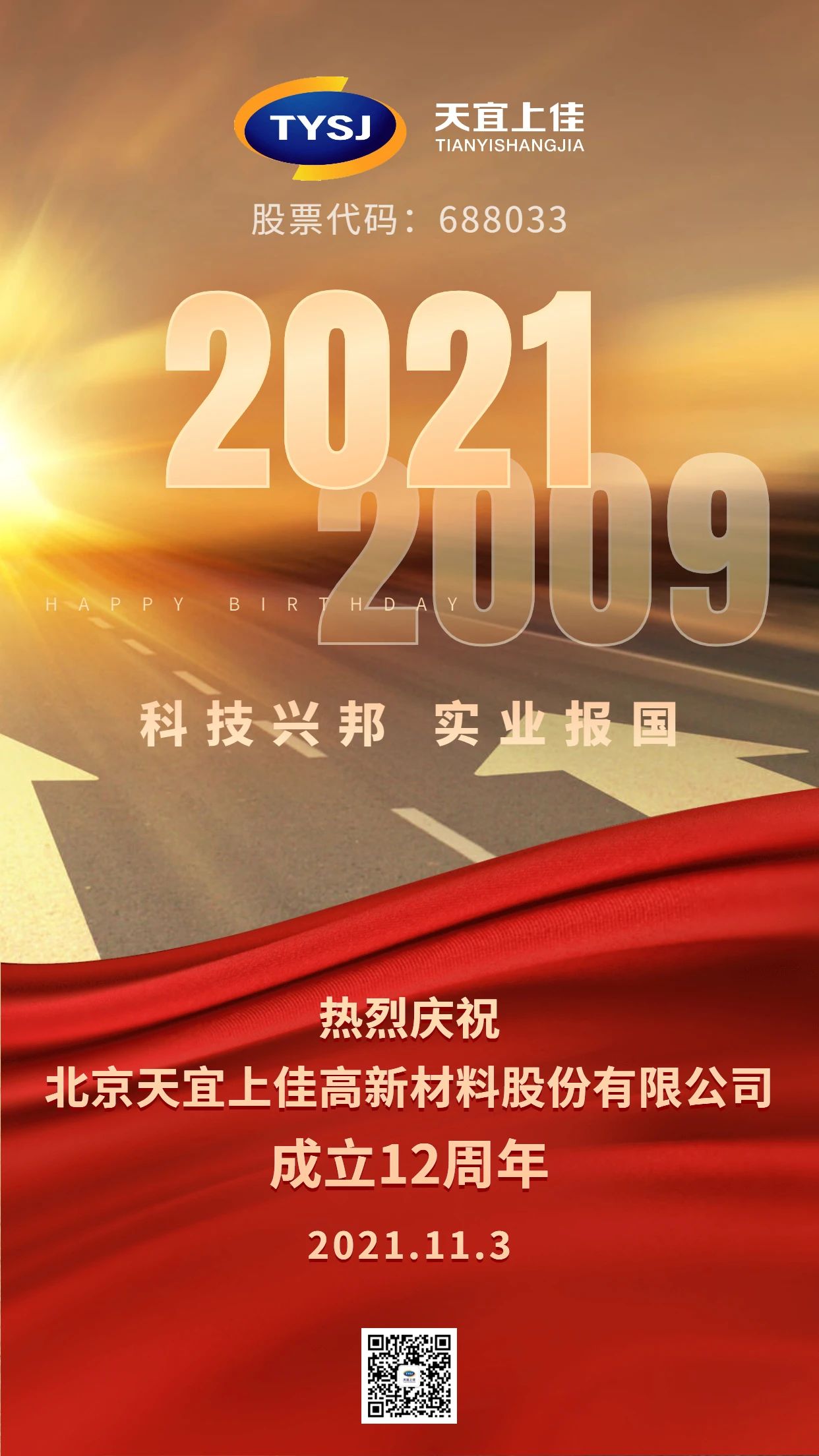 熱烈慶祝北京天宜上佳高新材料股份有限公司成立12周年