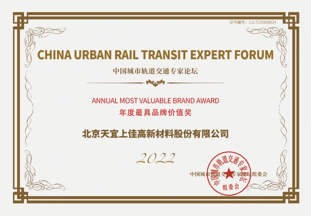 大會發(fā)布了多個成果榮譽獎項,天宜上佳憑借在軌道交通領域的杰出表現,榮膺中國城市軌道交通專家論壇“2022年度最具品牌價值獎”,品牌影響力持續(xù)增強。