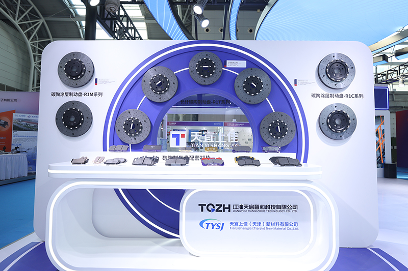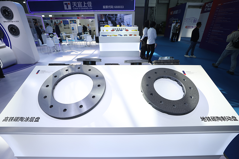 天宜上佳在主會(huì)場(chǎng)入口核心位置重磅展出碳陶制動(dòng)盤及配套襯片系列產(chǎn)品,以產(chǎn)品的全方位展示為核心設(shè)計(jì)理念,充分展示天宜上佳在制動(dòng)產(chǎn)品領(lǐng)域的深厚底蘊(yùn)和創(chuàng)新能力。
